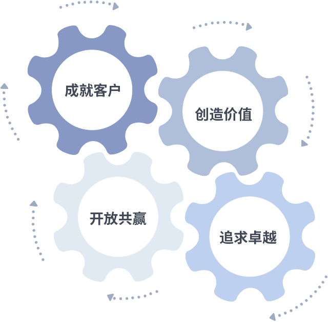 成就客户是一切决策的出发点,,,,创造价值是衡量所有工作的标准,,,追求卓越是BG真人做事做人的态度,,,,开放共赢是BG真人的格局也是最终的结果。。。。价值观的齿轮环环相扣,,推动着组织里的每个人不断向前。。